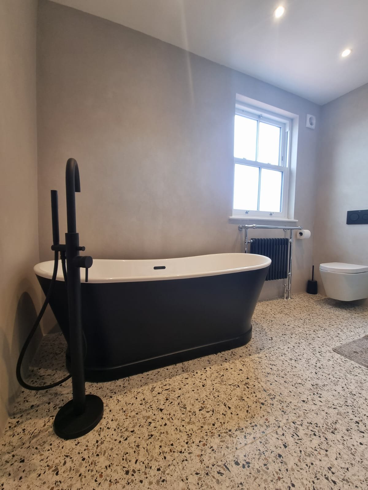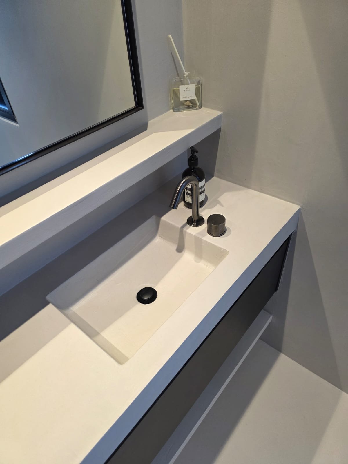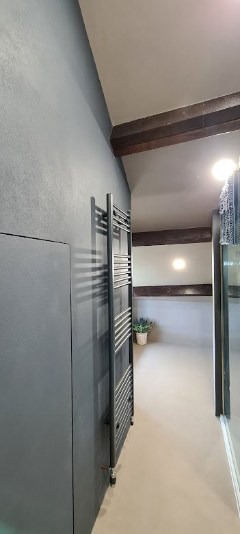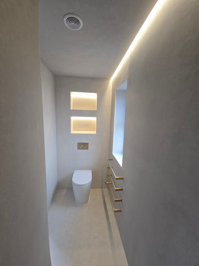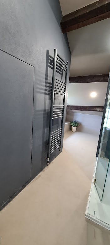 The smooth finish of Microcement makes it an ideal material for a modern, minimalist design which also combines beautifully with other materials like wood and ceramic.