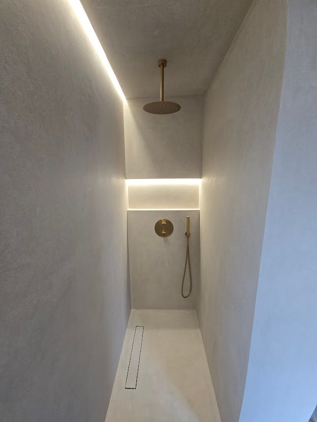 Microcement stands out as a versatile and cutting-edge material as it can be applied directly onto existing materials such as tiles, plasterboard, marble or plaster, achieving a rapid renovation of the space with a thickness of just 3 millimetres which is also completely waterproof and very hard-wearing.