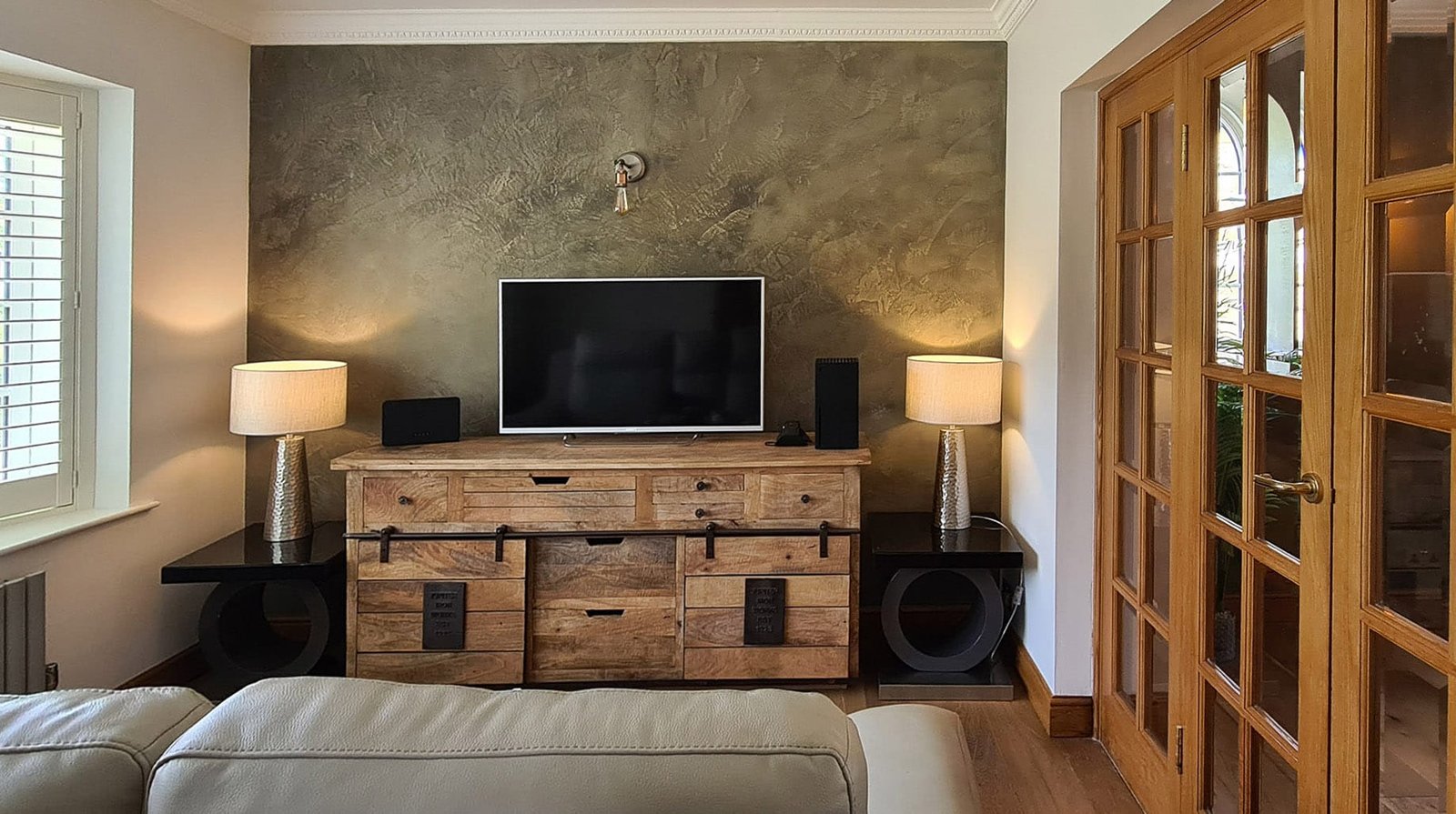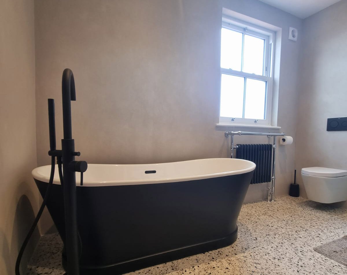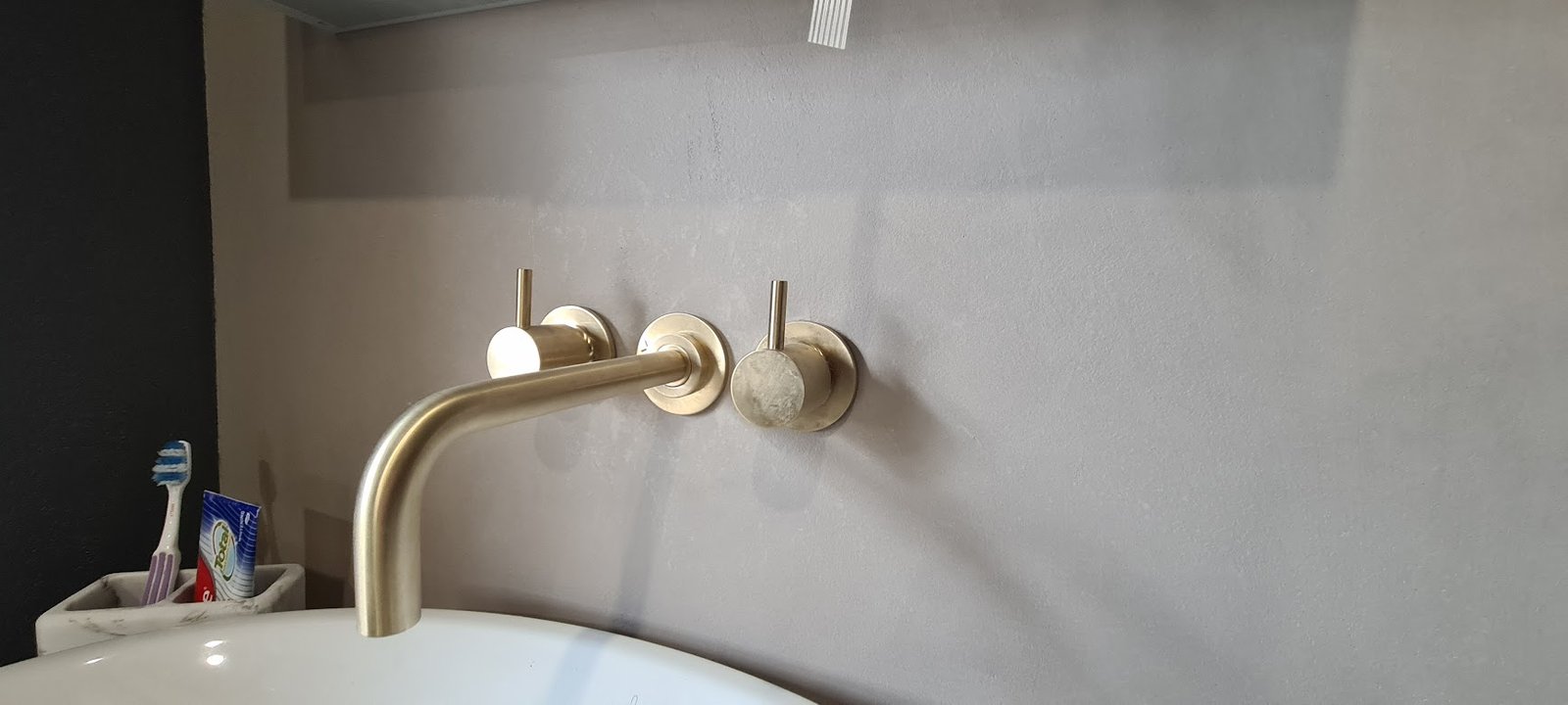 Natural lime-soap plaster finish originating from Morocco, installed to produce a smooth, seamless surface reminiscent of natural stone with a subtle sheen.