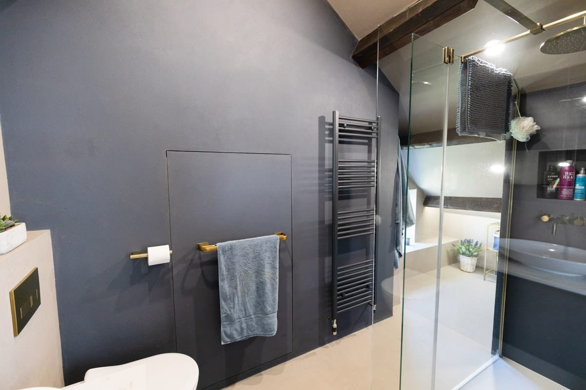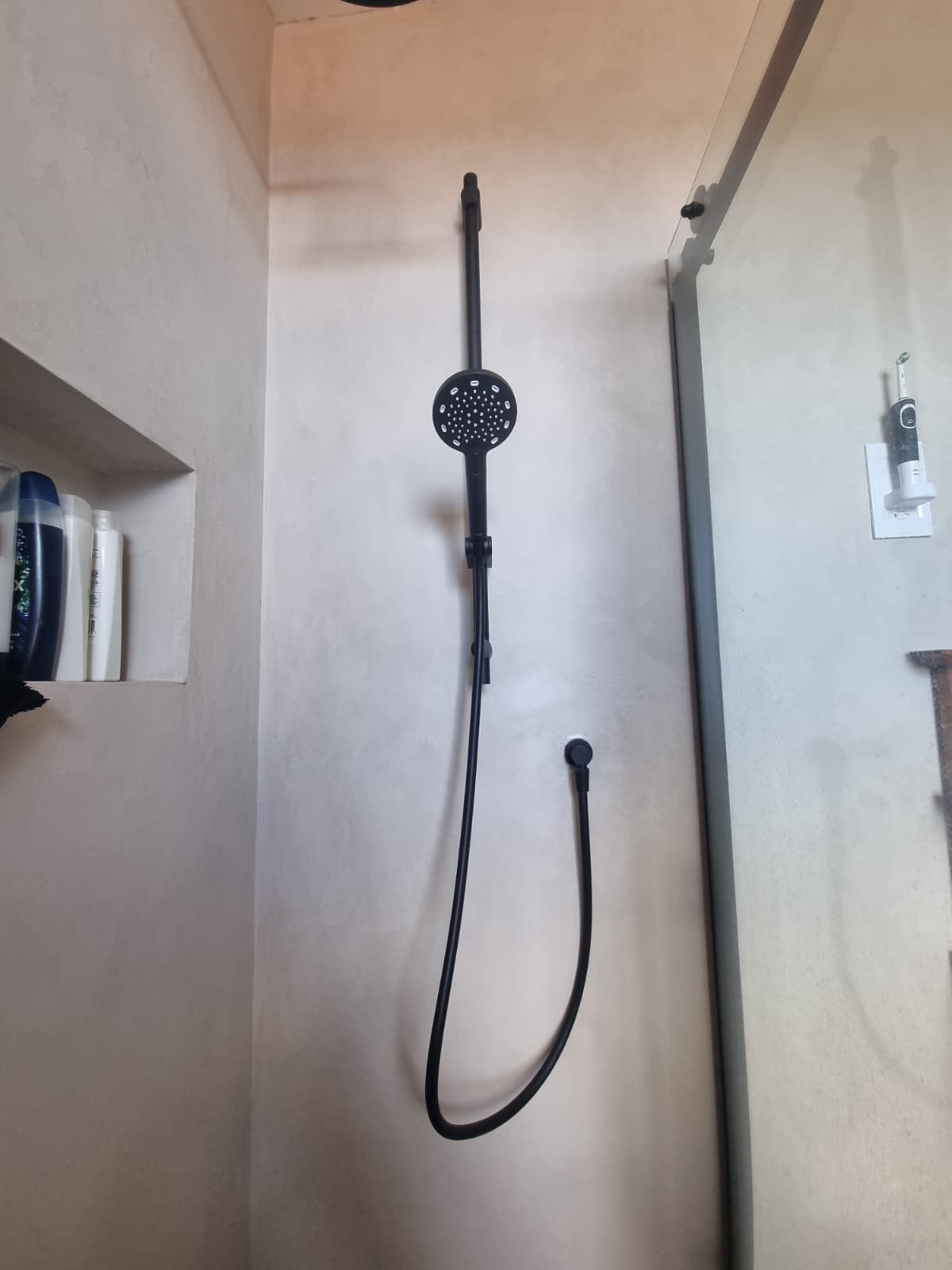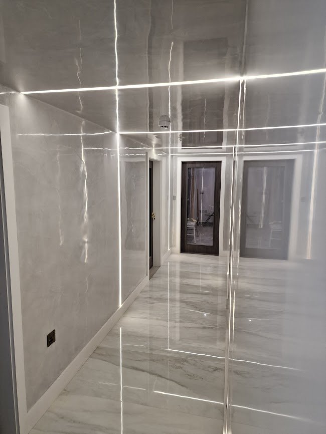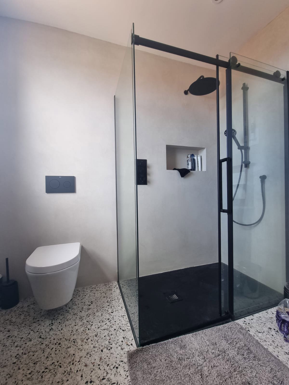 Natural lime-soap plaster finish originating from Morocco, installed to produce a smooth, seamless surface reminiscent of natural stone with a subtle sheen.