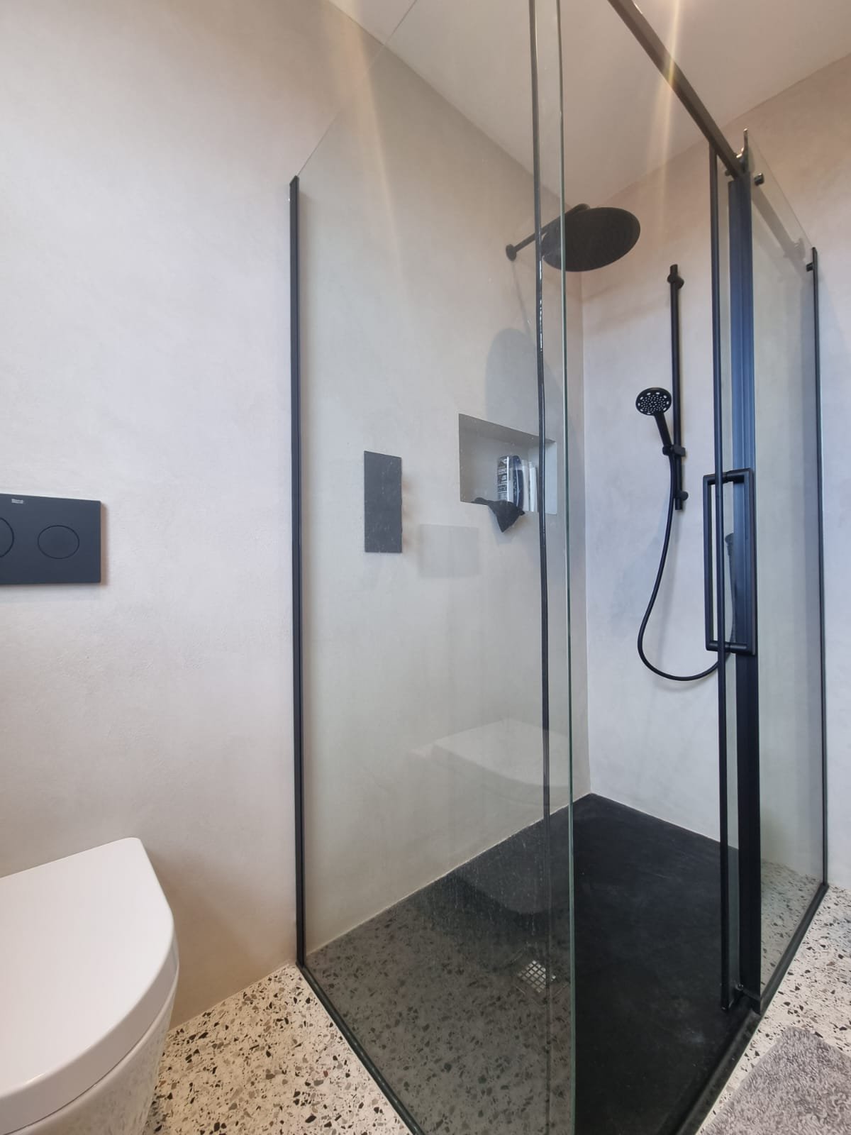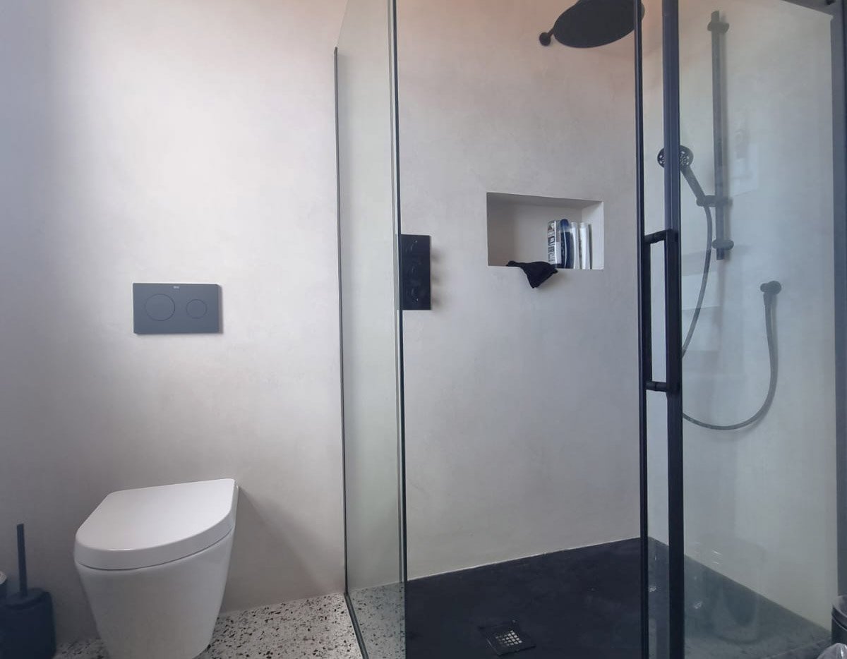 Seamless, cement-based decorative coating that is water resistant and very hard-wearing.